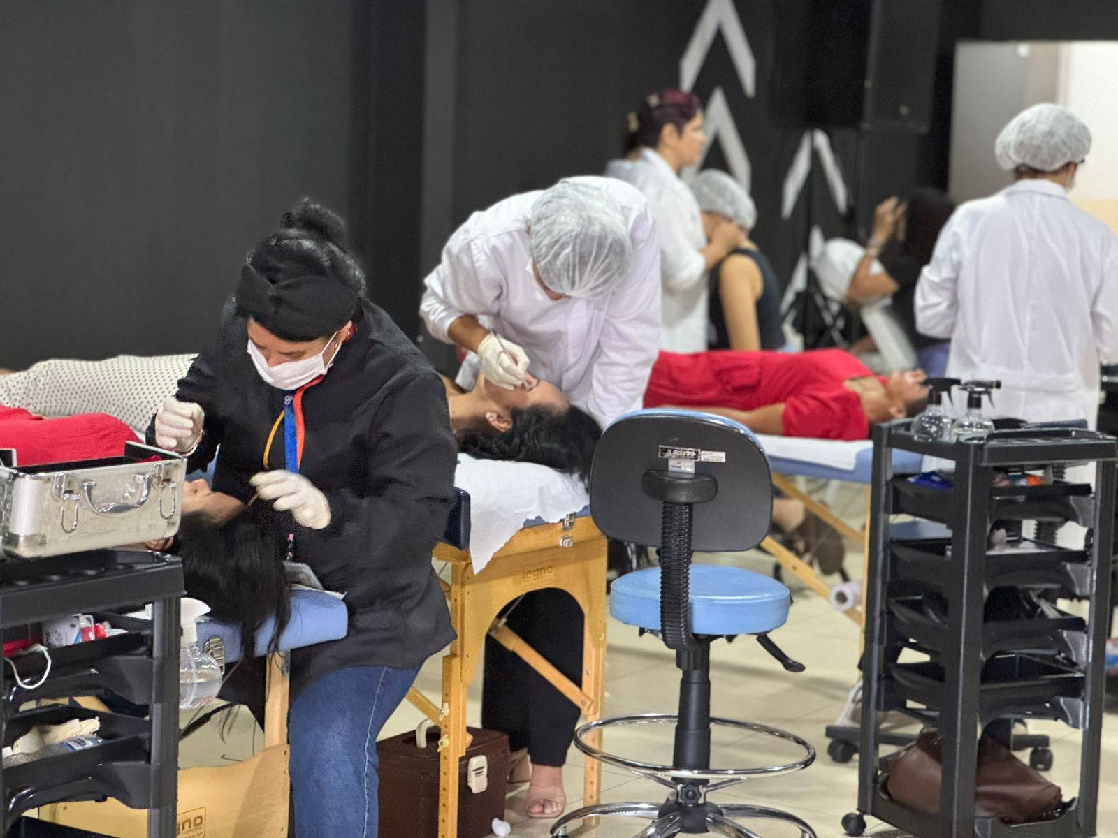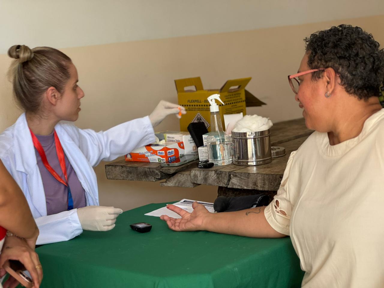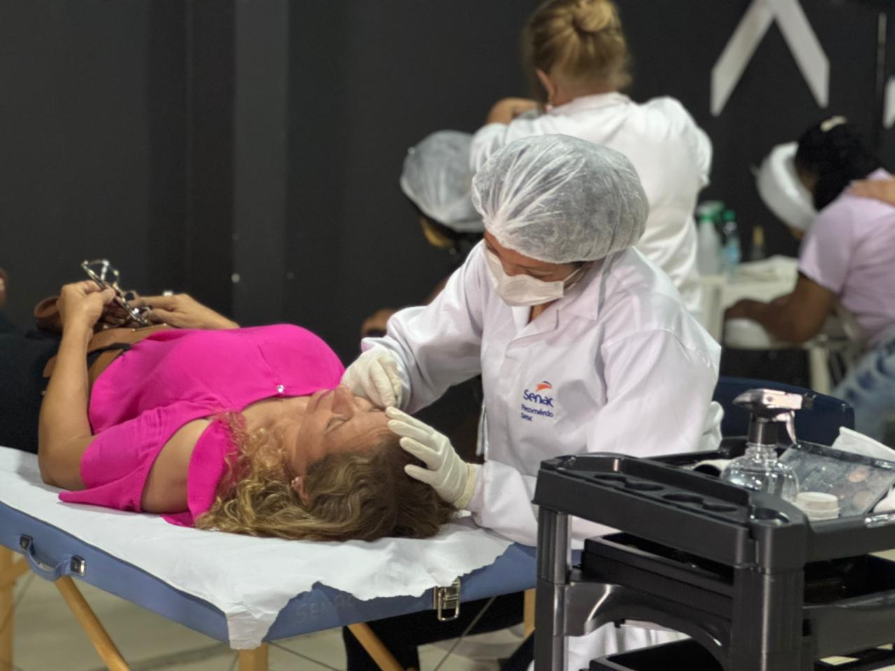 Foram realizados atendimentos de massagem, massoterapia, design de sobrancelhas, aferição de pressão, teste de glicemia e oficinas de gastronomia, em parceria com a equipe do SESC/SENAC.